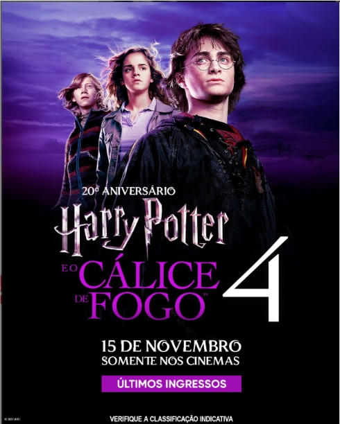 Harry Potter e o Cálice de Fogo, clássico da Warner Bros. Pictures, volta às telonas em uma reexibição comemorativa que marca os 20 anos do lançamento do filme. Somente amanhã, 15 de novembro, o público poderá reviver, ou assistir pela primeira vez, a magia do quarto capítulo da saga que marcou uma geração. Mais de 200 mil pessoas já garantiram seus lugares durante a pré-venda, e somente os últimos ingressos ainda estão disponíveis.