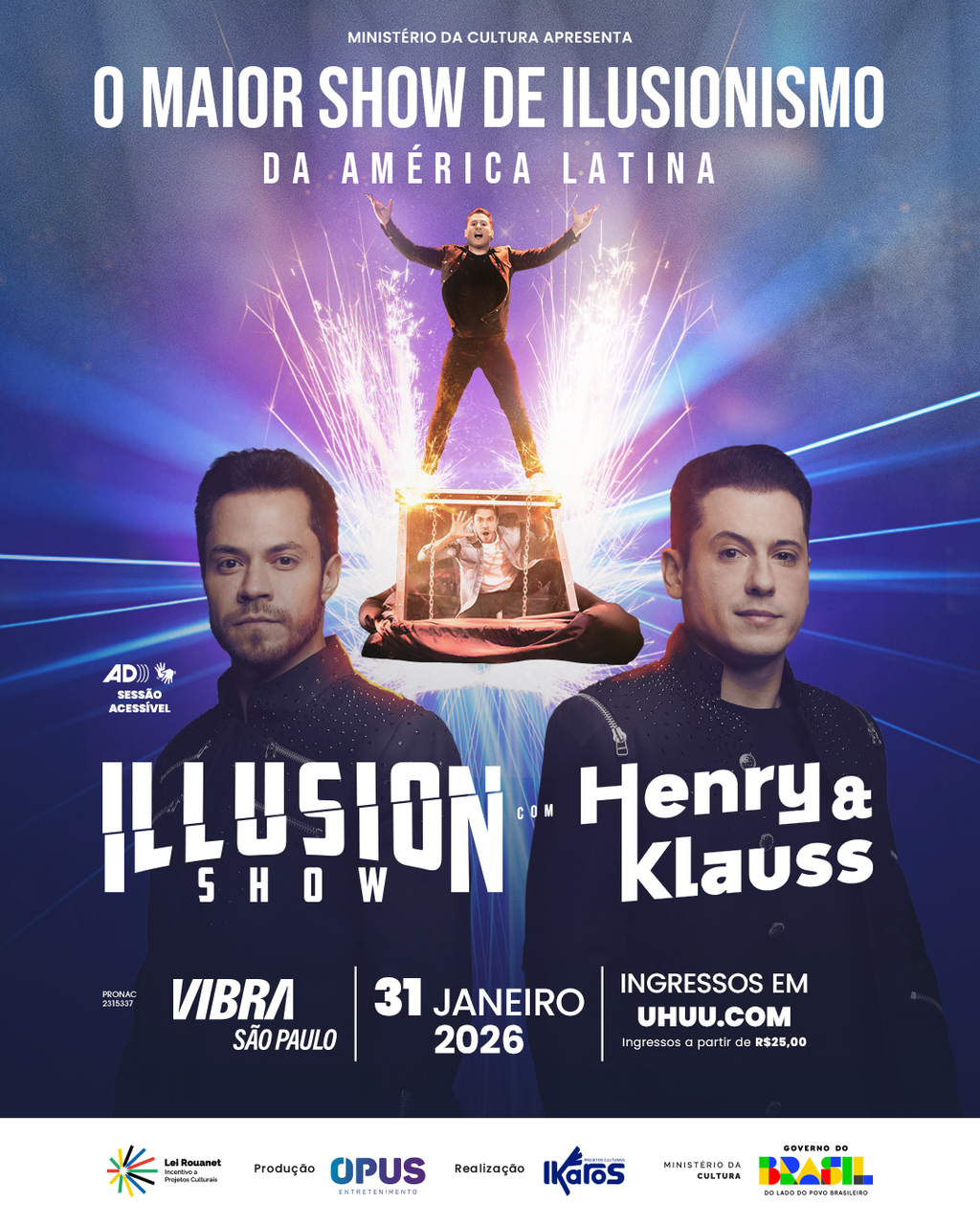 Reconhecidos internacionalmente e detentores de diversos prêmios ao longo da carreira, Henry & Klauss apresentam em São Paulo um espetáculo grandioso, moderno e surpreendente, que reafirma seu lugar como referências do ilusionismo mundial.