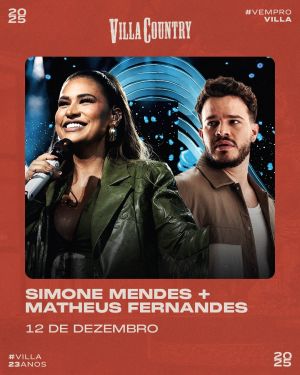 Villa Country recebe Simone Mendes e Matheus Fernandes nesta sexta-feira (12)