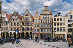 Münster fica situada no oeste da Alemanha, combinando 1.200 anos de história com uma energia jovem e animada. Conhecida pelas ruas de paralelepípedos, arquitetura gótica e atmosfera descontraída, Münster oferece um cenário urbano calmo, mas repleto de cultura. A histórica Altstadt (Cidade Antiga), reconstruída após a Segunda Guerra Mundial, apresenta marcos como a Catedral de São Paulo e as passarelas em arco do Prinzipalmarkt, enquanto o calçadão panorâmico, um cinturão verde que contorna o centro da cidade, é muito apreciado por ciclistas e pedestres. A cidade abriga uma das maiores universidades da Alemanha e se anima com o ritmo da vida estudantil, de cafés e de cervejarias às margens do rio.