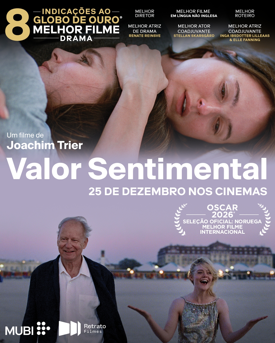 O novo filme de Joachim Trier é uma das grandes apostas para a cerimônia, reunindo oito nomeações nas principais categorias, incluindo Melhor Filme de Drama. Stellan Skarsgård é um dos favoritos na disputa por Melhor Ator Coadjuvante. Desempenhando um papel central na trama, sua performance foi muito elogiada pela crítica e se consolida como um dos favoritos na disputa ao prêmio. Além disso, a produção também concorre a Melhor Direção para Joachim Trier, Melhor Atriz de Drama para Renate Reinsve, Melhor Atriz Coadjuvante para Elle Fanning e Inga Ibsdotter Lilleaas, Melhor Roteiro e Melhor Filme em Língua Não Inglesa.